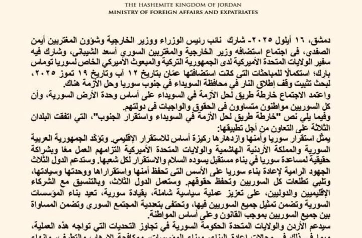 مثّل الاتفاق الذي أُعلن في دمشق بتاريخ 16 أيلول 2025 بخصوص محافظة السويداء، بحضور...